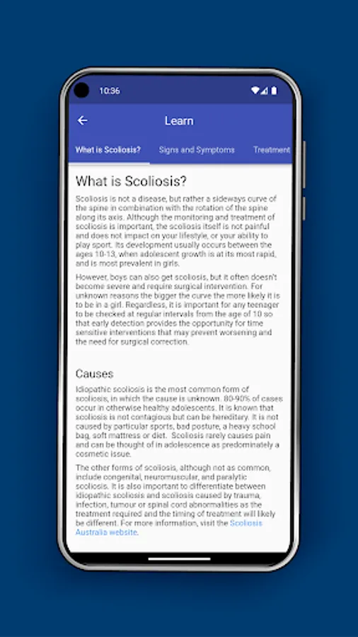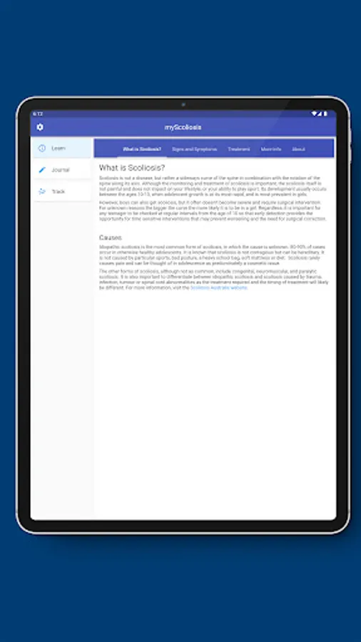 Importantly, myScoliosis also provides a space to journalise thoughts and experiences and provides reliable information and resources to explain scoliosis.