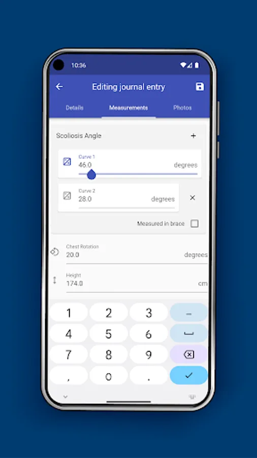 myScoliosis lets you track symptoms, take appointment notes, keep records of x-rays and radiographs, and track appearance changes.