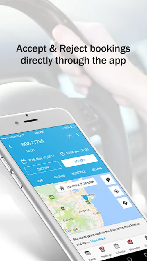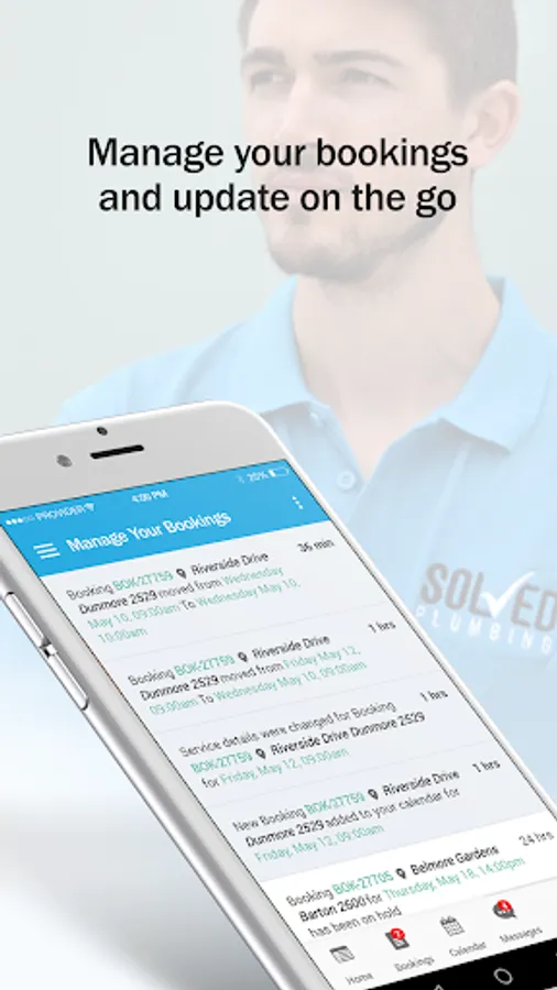 App designed to help Solved Plumbing technicians communicate with the office regarding bookings and calendar.