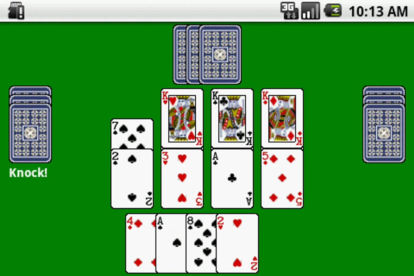 The aim is to get rid of all your dealt cards first. Cards are placed on the table in suits sequentially, up and down from the Seven. You want to stop your opponents from going and Make Them Knock!