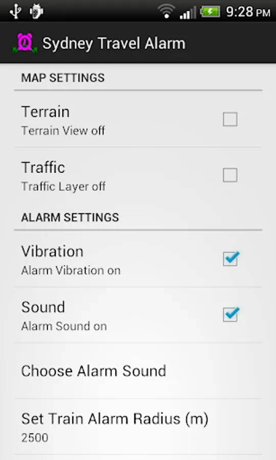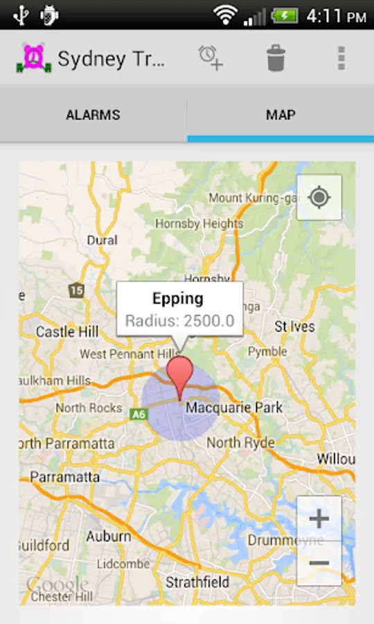 This app is designed to allow the user to set an alarm that will activate when the user approaches a certain location on the train, bus or ferry networks in the Sydney area and surrounds.