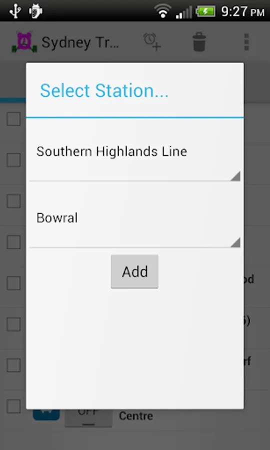 To add an alarm, simply select the station/ferry stop/bus stop from a pick list. This alarm is then stored and can be turned on or off as desired.