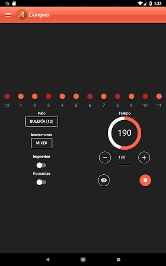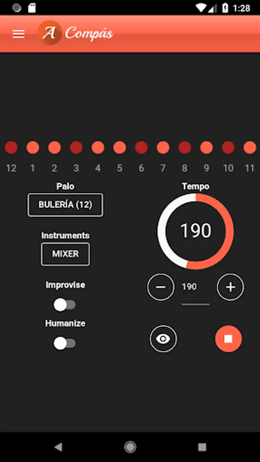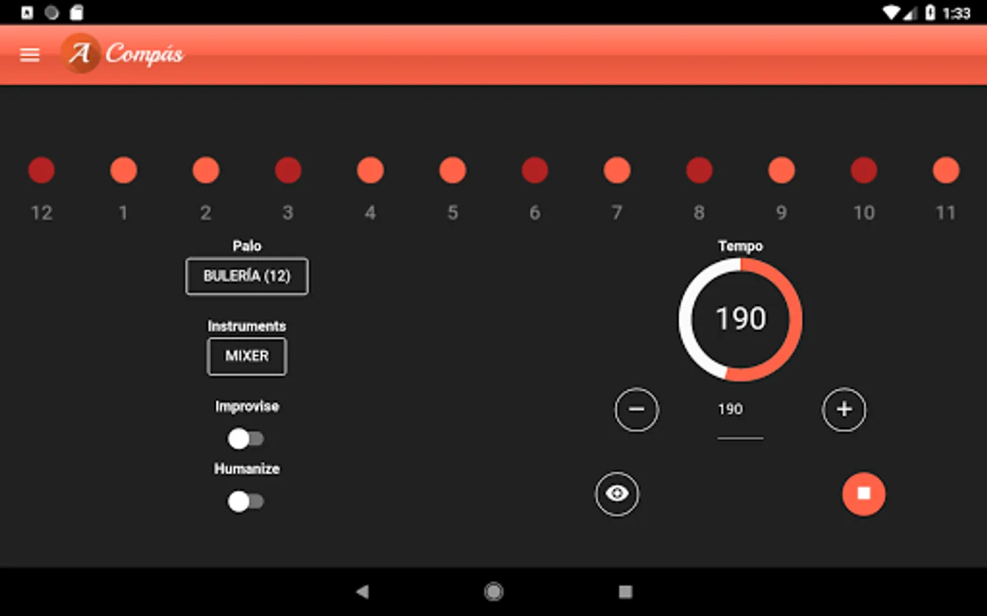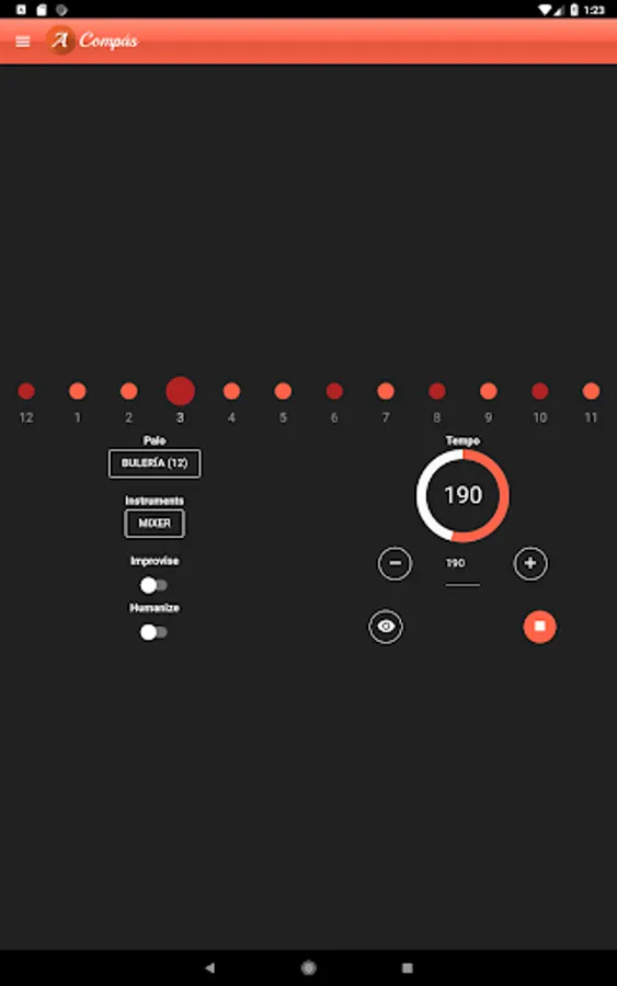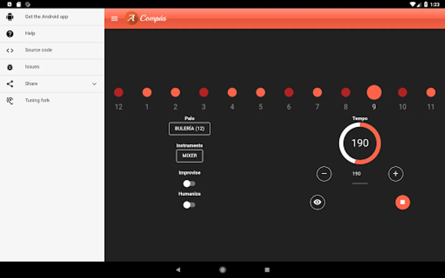 A Compás is a flamenco metronome application. It will let you play various flamenco rhythms and change the tempo. It features a graphical visualization and some options. There is also a website version of this app, available at https://acompas.org .