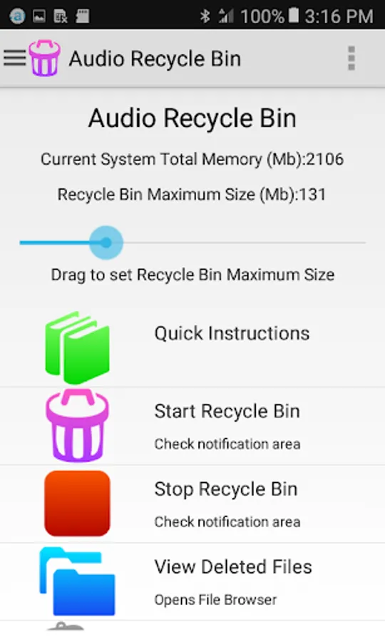 This app works just like your computer's recycle bin. Deleted Audio Files such as ringtones will be saved in the bin to give you a chance to restore. No root required!