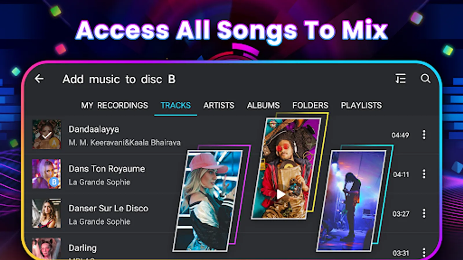 DJ Music Mixer - DJ Remix Studio is a magical virtual DJ mixer that can mix your favorite music and seamlessly connection it, achieving perfect results. DJ mixer allow you to make remix songs,make music and record amazing track. Through DJ Music Mixer, you can use the same professional functions as a large professional DJ console, such as bpm synchronization, EQ adjustment, Fragment loop, mash, scratching, cue settings and crossfader. Whether practicing at home or showcasing to friends outside, you can achieve amazing results. 🎊🎉