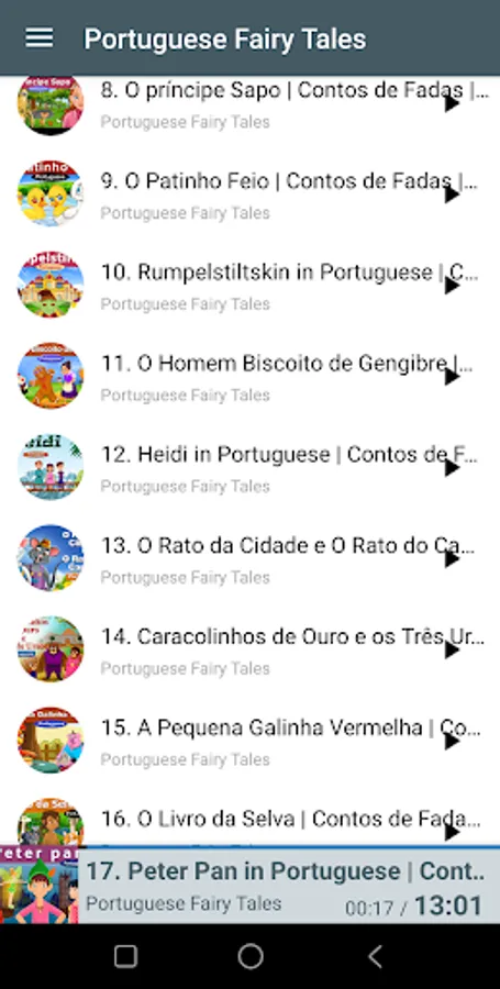 Listen to about 200 fairy tales in Portuguese, covering many topics.