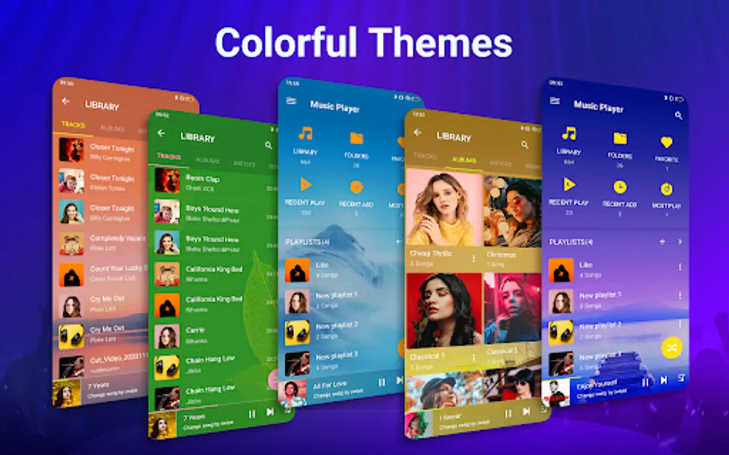 - Built-in 14 Gorgeous background skins. Modern intuitive design to suit your musical taste.