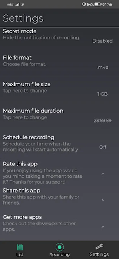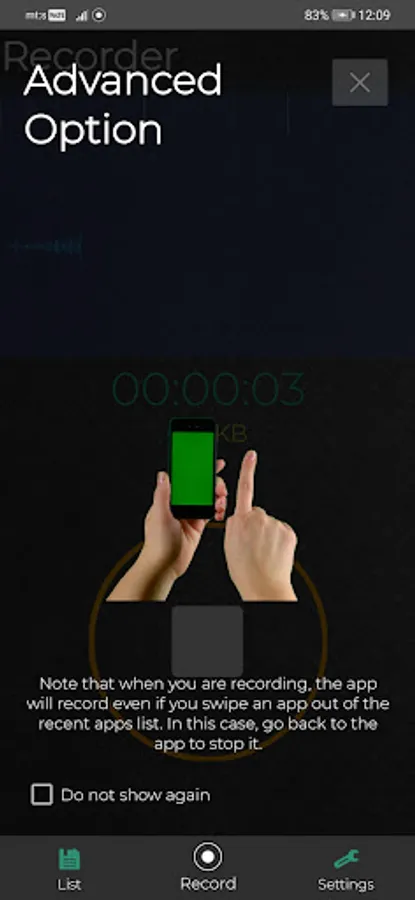 • Recording in the background even when the screen is off or the app is swiped out from the recent apps.