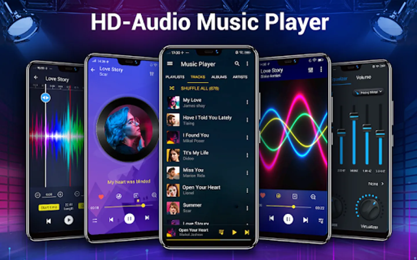 Music Player with powerful music equalizer, bass booster and great sound virtualizer, Quick search all music files, free to get this perfect audio player and media player.