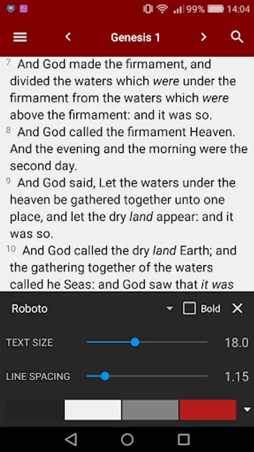 You don't have to always read the Bible text. This bible will read to you at your convenient time. You also get the opportunity to read the verse of the day which is always inspiring. This app will help you start your day very pumped up and inspired to fight any thing that comes your way.