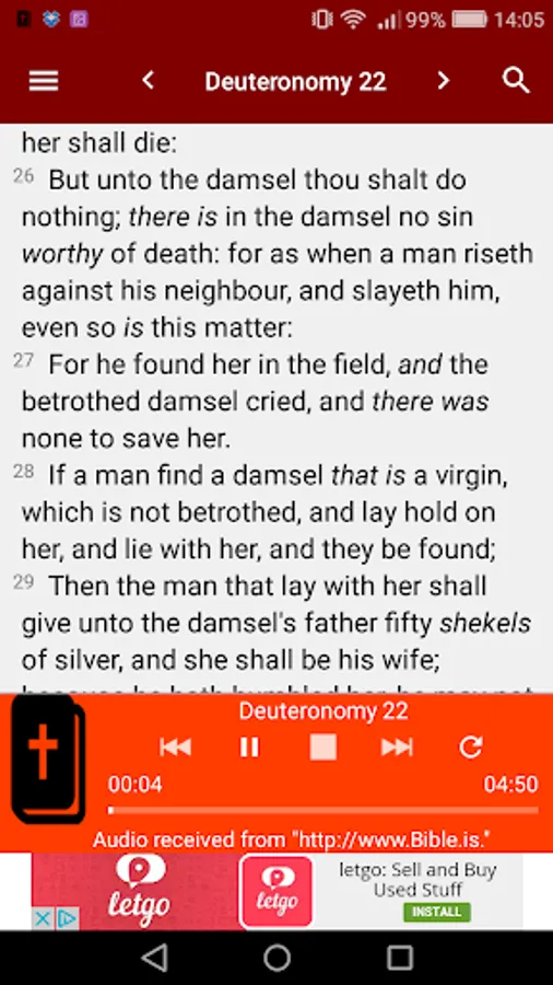 Free KJV Audio Bible or King james bible for all android phones which have android 4.0 and higher.
