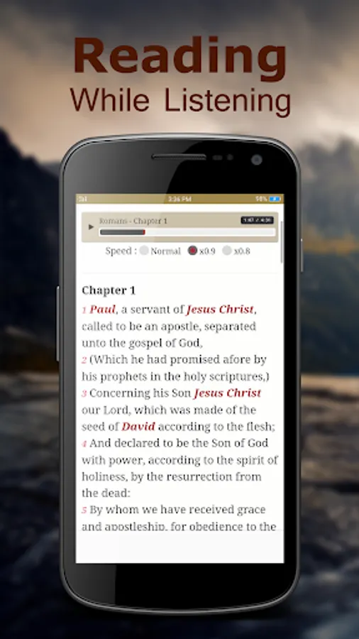 This KJV Bible App (free) comes complete with text and audio Bible, all chapters of New and Old Testament. You can read the Bible in full offline mode. In order to play the audio, Cellular or Wi-Fi network should be enabled so that you save lots of space on your android device. You can read the verses along with the narrator. It was developed to help users read and listen to the word of God in English anywhere and anytime using their android mobile devices.