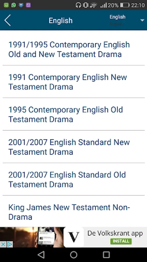 There is Farsi language, ewe language, akan/twi, Awa, Burmese, Cerma,Chigogo, English Standard version, Spanish, frafra, Taiwanese, Kirghiz, Portugues, Brazilian, Thai, Chinese language as well as many other languages. This audio bible - bible audio is the bible app for you today. Share with friends and family over Facebook,