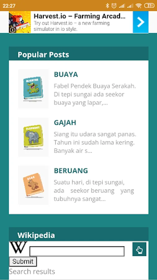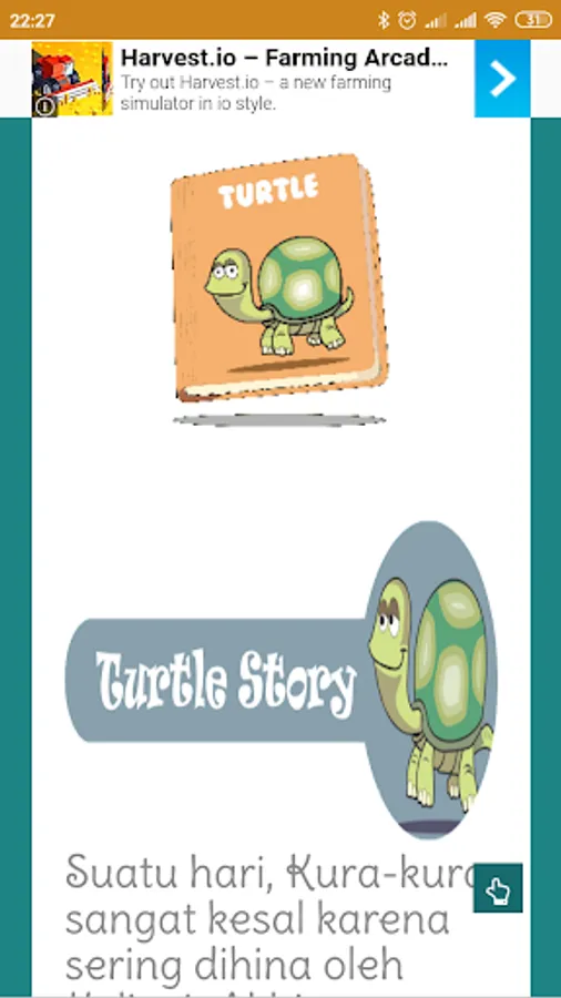 This App just containt short animal story by illustration with alpabethical A-Z of Animal, each animal have own story, every story give inspiration for reader.