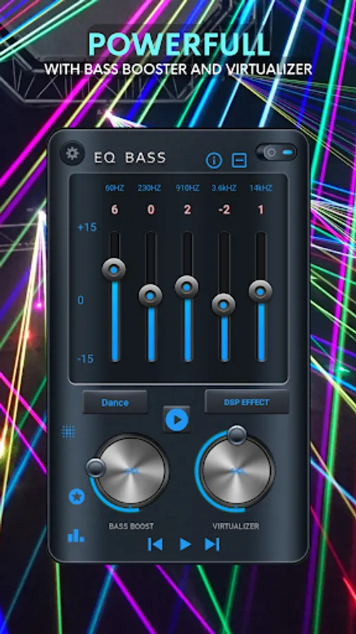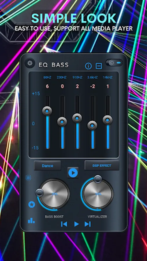 Bass Booster & Equalizer is available Music Equalizer with five bands Equalizer, Bass Boost, Virtualizer effects and the best volume.