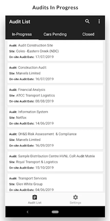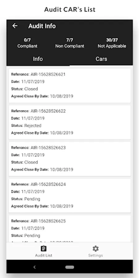 Easy sorting of all audits from open, closed, CAR’s pending and audit date
