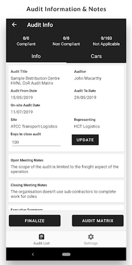 Customized audit matrix’s tailored to the industry being audited, no more answering dozens of questions with ‘N/A’