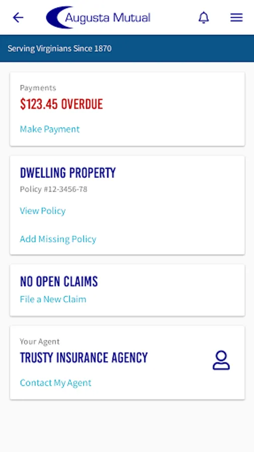 Augusta Mutual provides insurance coverage for homes, farms, autos, and businesses.