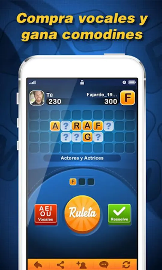 Ruletras is the game of Wheel Of Fortune adapted to mobile devices.