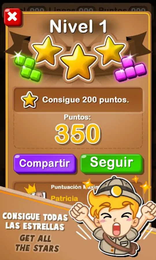 Use power ups to help you, turn piece, remove lines, change part etc.