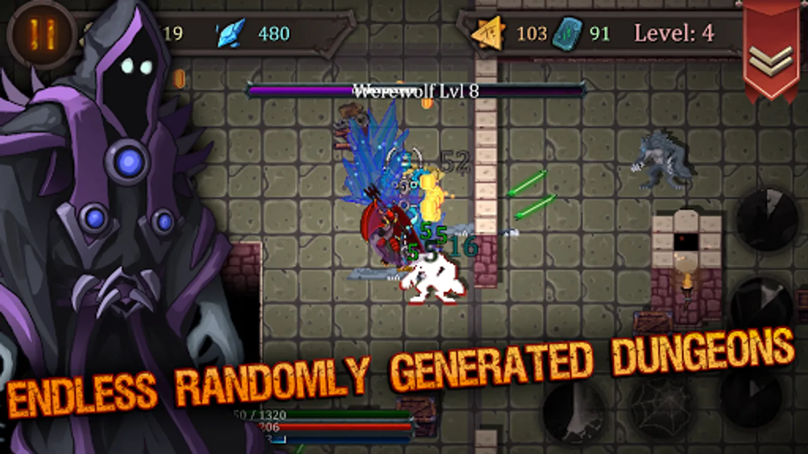 Explore endless procedural and increasingly difficult dungeons, taking on challenging enemies and fierce underworld beasts.