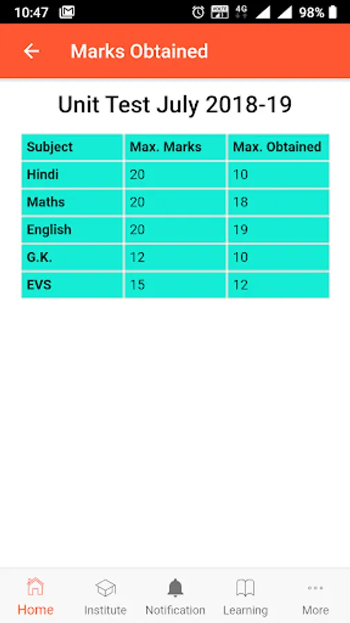 Parents can view all marks which student get in their class tests, quaterly, haly yearly and final exams.