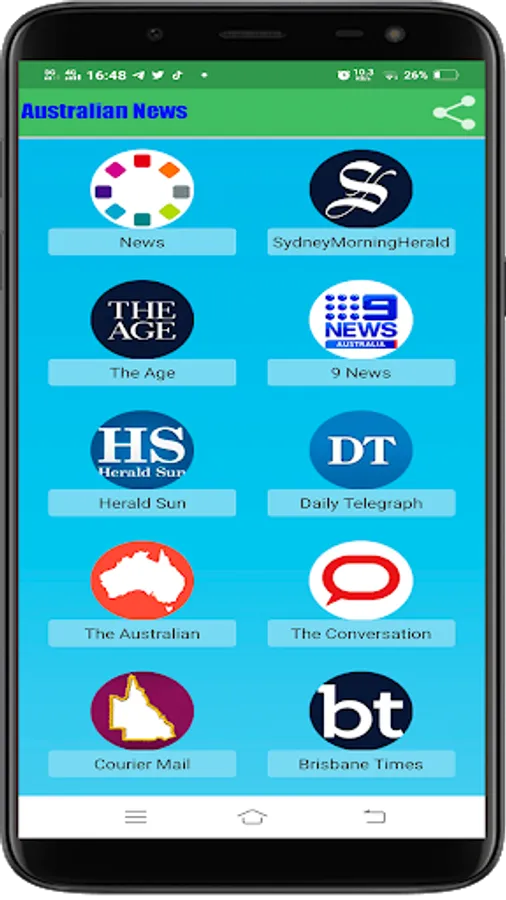 All Australian Newspapers All also provides user share Australian Newspapers application to another friend,