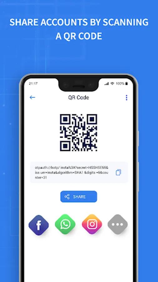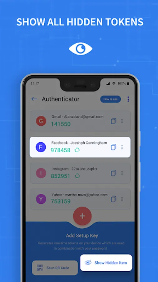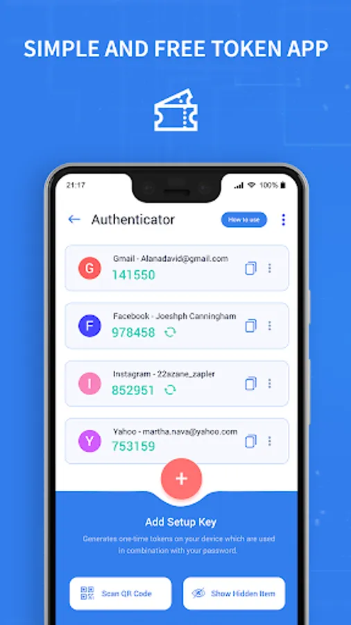 > The generated codes are one time tokens that provide an extra layer of security to your online accounts. After scanning a simple QR code, your account is protected or you can add manually details.