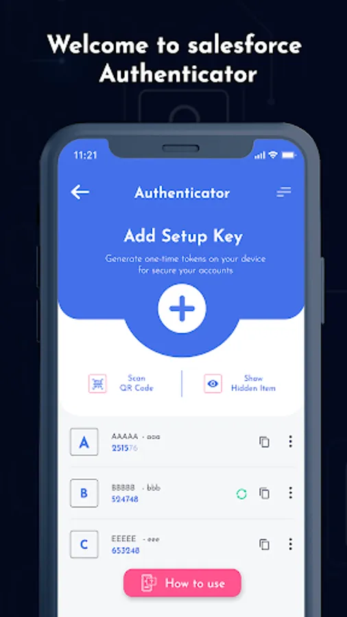 - The generated codes are one time tokens that provide an extra layer of security to your online accounts. After scanning a simple QR code, your account is protected or you can add manually details.