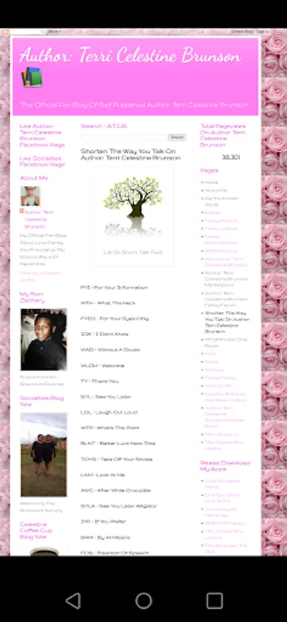 Author: Terri Celestine Brunson 🌸 provides a safe place for everyone with cheerful outlook to express their feelings, or opinions without being attacked. Author: Terri Celestine Brunson Fan blog site moderator is not responsible for every one's opinion, or how they hold their opinions. Please -- everyone -- keep it clean and discreet. There are limitations on my fan blog site only if your opinions, or thoughts doesn't include vile and vulgar obscenities, threats of death, or bullying against any of my posters, or myself on my fan blog site. Thanks for taking time out of your day to visit Author: Terri Celestine Brunson. GOD Bless you and I appreciate you. 🌸 Thanks for stopping by. 🌸