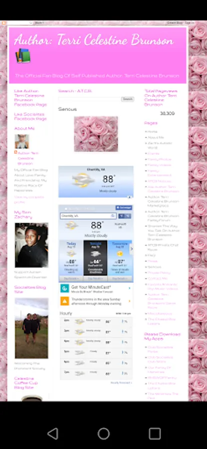 Hello and Welcome to Author: Terri Celestine Brunson Blog Application. Introducing: My name is Terri Celestine Brunson 🌸 I’m a self-published author of my first book, "The Minorities". I'm disabled aspire mother of one, a son with High Functioning Asperger’s Syndrome (Autism), PDD (Pervasive Developmental Disorder) NOS, and ADHD. His name Zachary. In my spare time I'm a writer and a blogger. 🌸