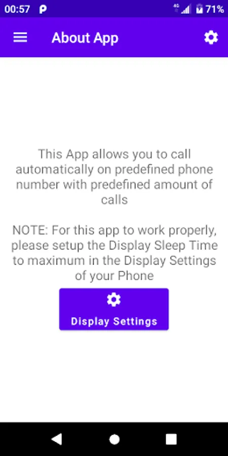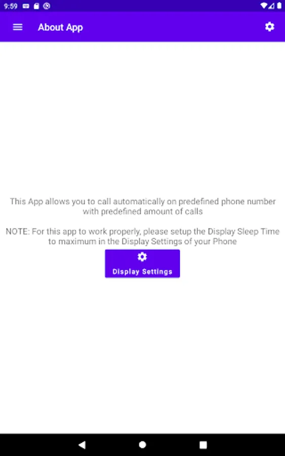 NOTE: For this app to work properly, please setup the Display Sleep Time to maximum in the Display Settings of your Phone