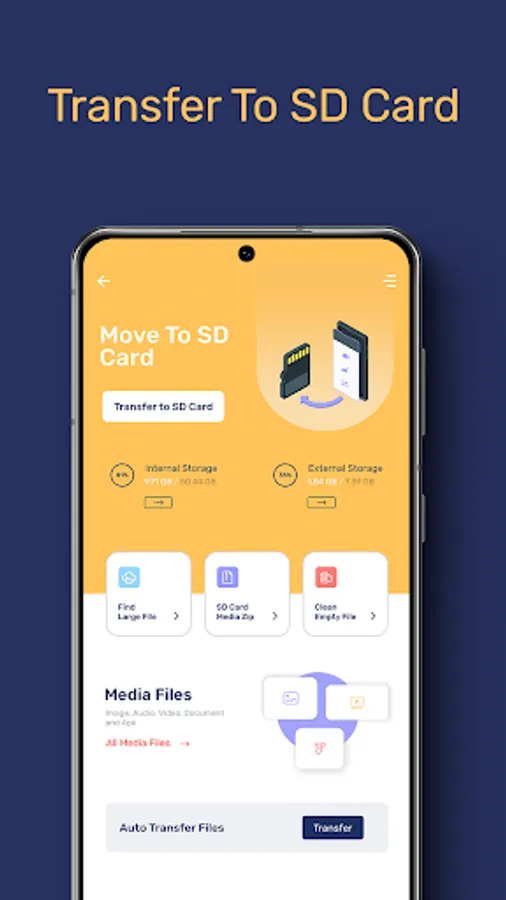 Files To SD Card is a one click fast solution to move your files from internal memory to SD card in your phone. Move your Apps, Photos, Videos and All other Files to your SD card. Transfer To SD Card app is useful for devices with small internal memory and which do not allow saving your files directly to SD card.