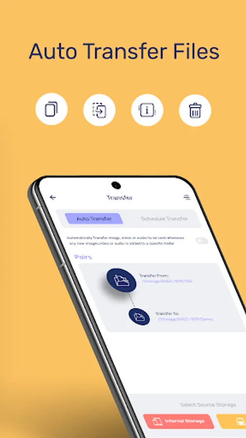 Move your Photos, Videos, Music, Zip Files, and all Other Downloads from your Phone Memory to SD card. You no longer have to worry about low Internal Memory. You can automatically transfer files from internal memory to your SD Card memory easily.