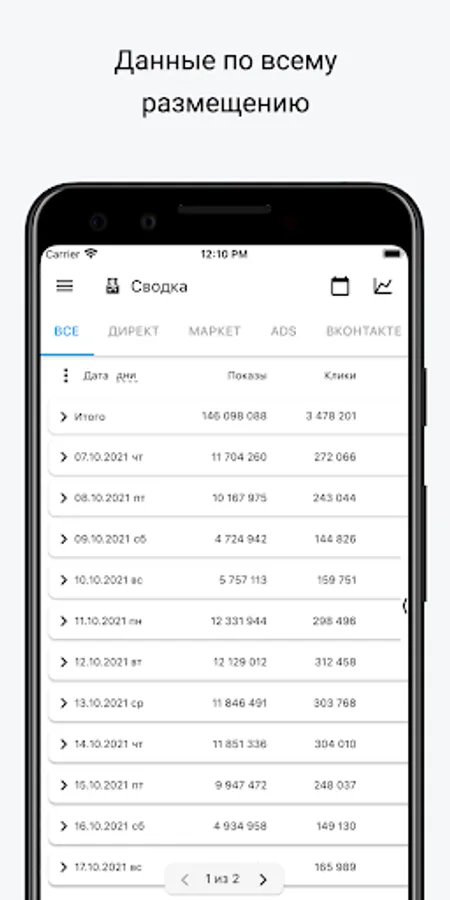 - analyze advertising statistics on sites: Yandex.Direct, Yandex.Market, VKontakte, myTarget and others.