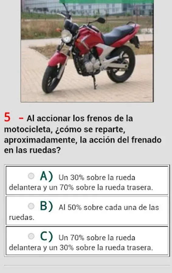 They are questions taken from the DGT exams since we are a real driving school where our students when they return from taking their exam they copy the questions that have come out, we pass them to clean and here we have the official tests.