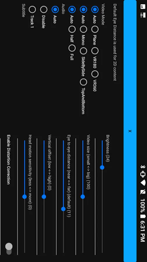 Video Options (sbs/tab, full/half, audio track, subtitle ...)
