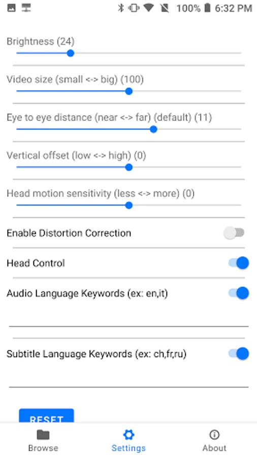 Rich settings (brightness, eye distance, video position ...)