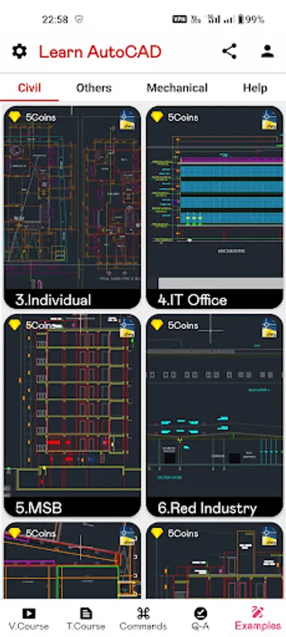 This app guides you through the AutoCAD user interface. For newcomers, this is the best place to start, as it includes a quiz, building plans, errors, Interview Questions, Revit, structural detailing, updates, xref, lessons, zoom out, and so on. Some examples include house plans, land survey drawings, the absolute coordinate method, advantages, ideas, benefits, assignments, and notes.