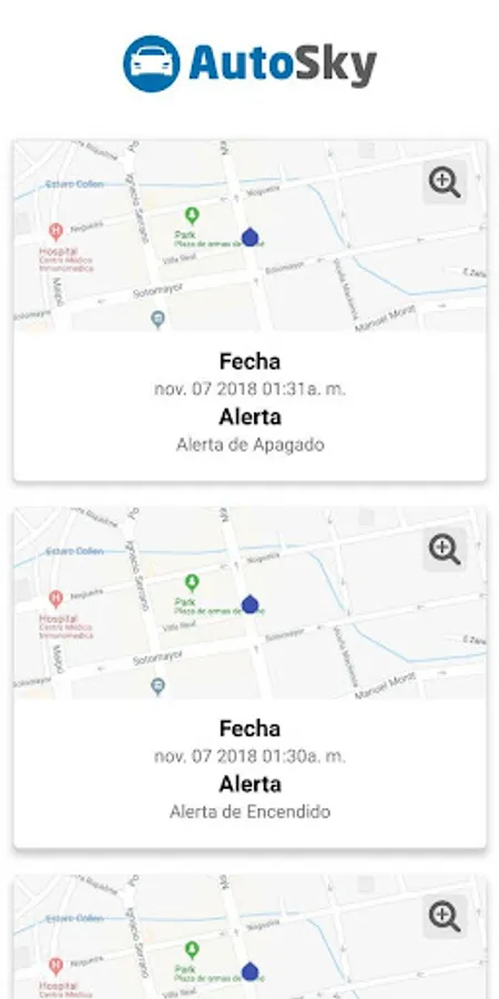 * Route: View the previous routes of your vehicle, up to the last 3 days.