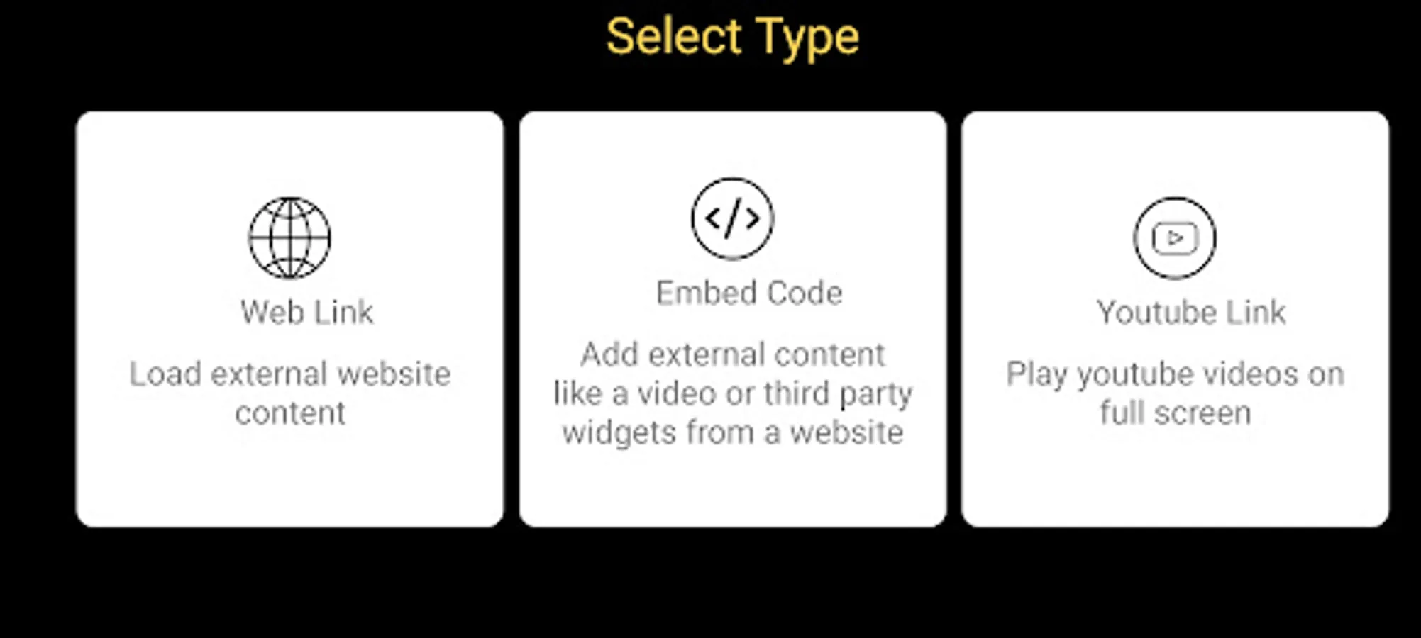 Easy Setup: Our app is easy to set up and use. Simply download the app, enter your web link, embed code, or Youtube link, and you're ready to go. Once set up, the app will automatically open your desired link when you turn on your Android TV.