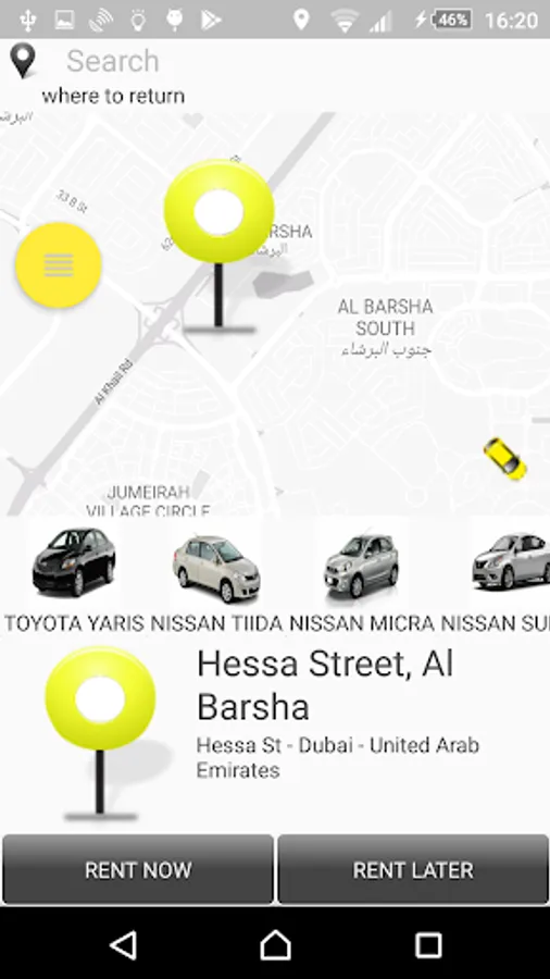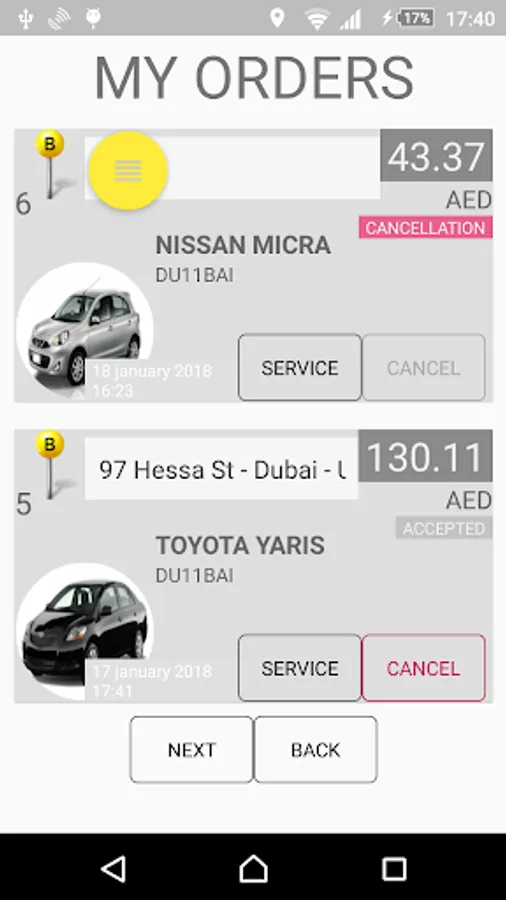 Car Rental in Dubai demo application for customers and for cars deliveryman.