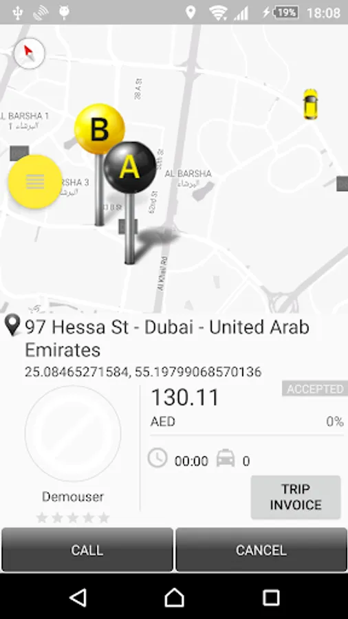 - The Android app in Customer or Driver mode works. To switch on/off mode need to click on Car/Figure flat round button.