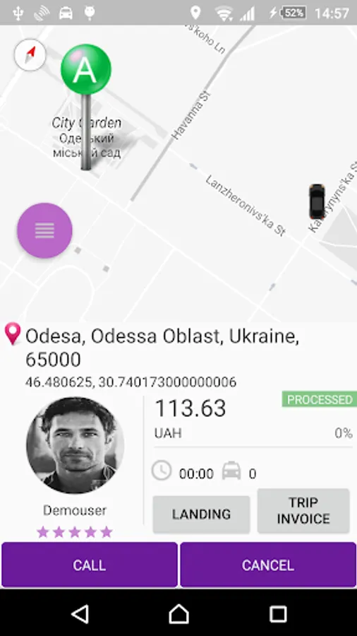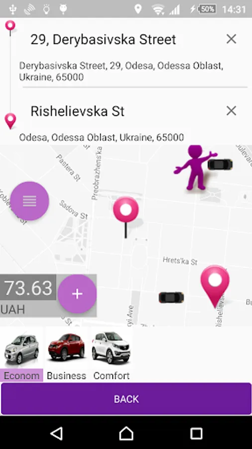 - The Android app in Customer or Driver mode works. To switch on/off mode need to click on Car/Figure flat round button.