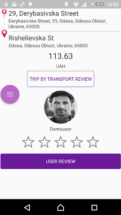 - Customer's after UI Booking forms in Order Status mode : Accepted, Processed an Order for Taxi. Trip by Transport Review and Driver (as User) User Review (Review UI form). Customer's Payment UI form for order payment with PayPal payment provider framework using in the Android app by default (Require PayPal API key and signup as merchant, details on https://developer.paypal.com).