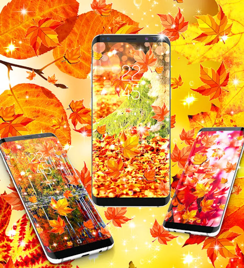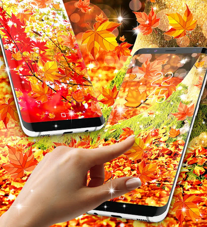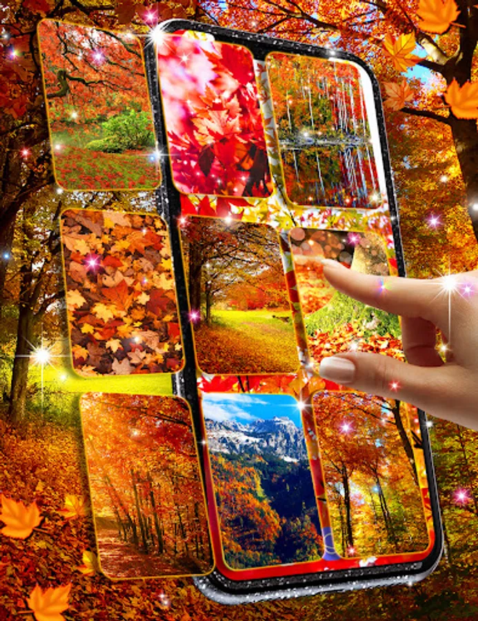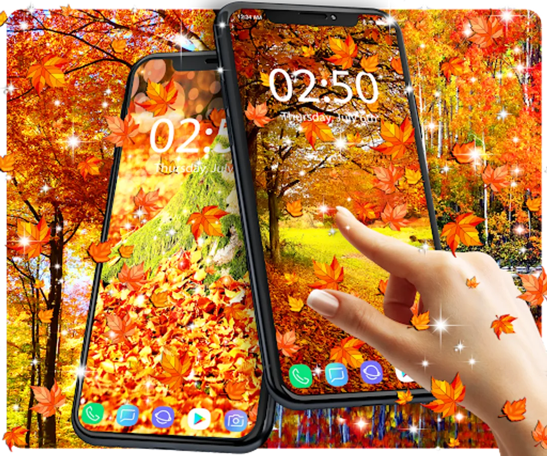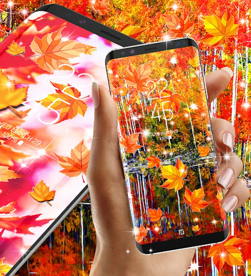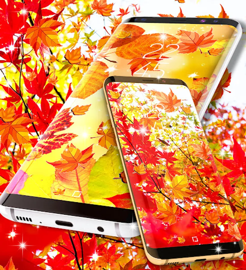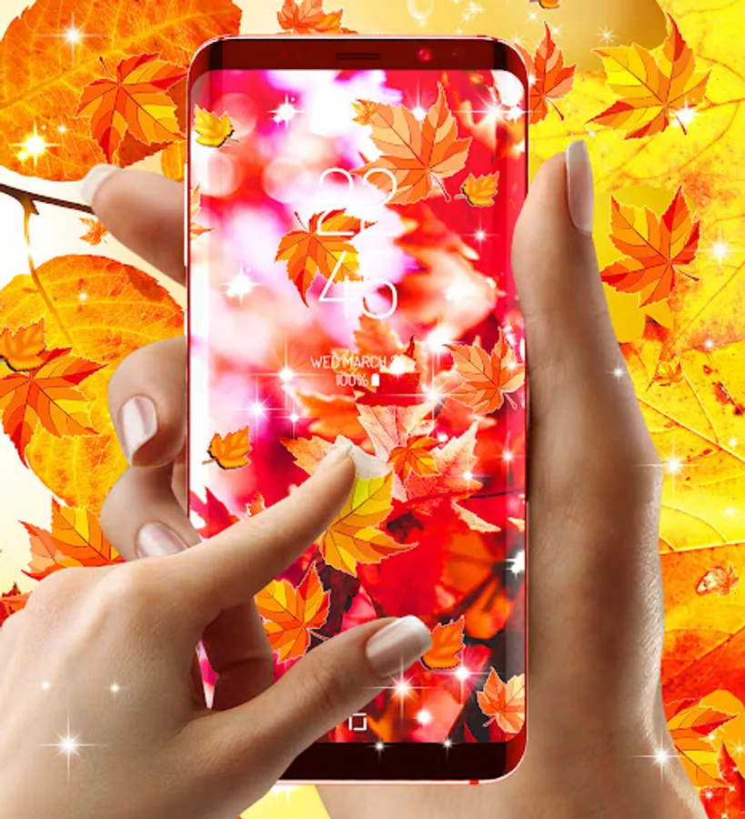 Autumn rusty leaves will fall over your screen ,in the back you will choose a beautiful background with red or yellow trees that will make your phone perfect for the fall season.