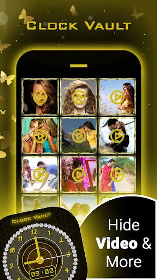 Hide Photos, Video Locker app & photo hider Gallery Vault app that lets you hide pictures and personal picture lock and photo hider albums or secret videos behind secret clock. clock vault look like simple clock with the naked eye but has a secret gallery vault behind it.