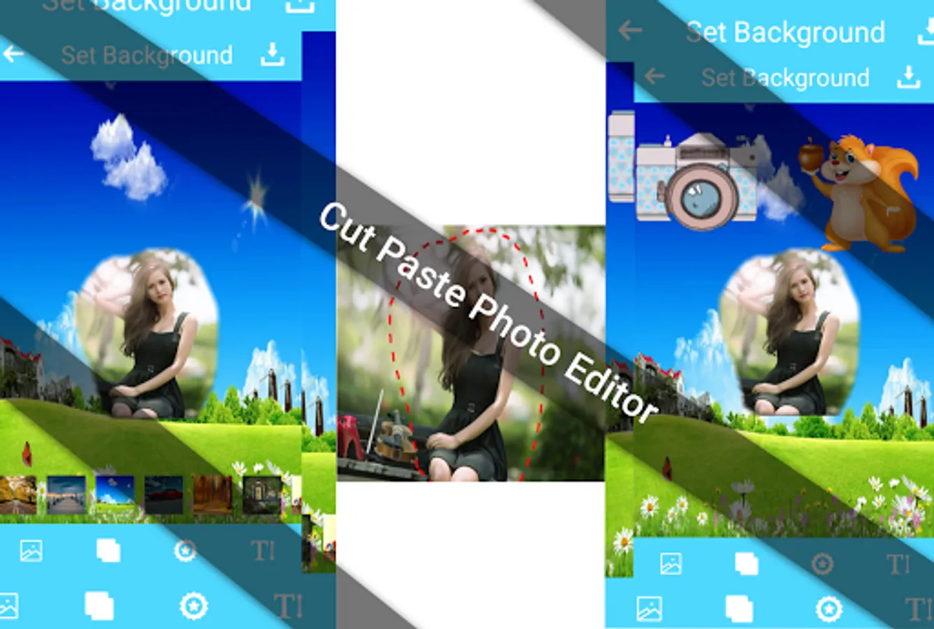Cut Paste Photo Editor is a populer Photo Editor app by which you can cut out any part of image automatically with Auto Selection tool and paste it on another image or background.