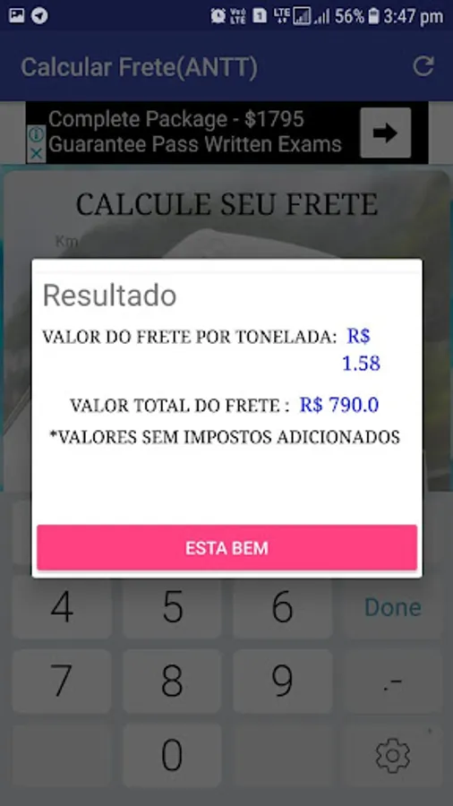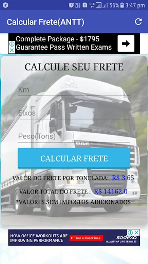 Simple and practical application for freight calculation table as ANTT.