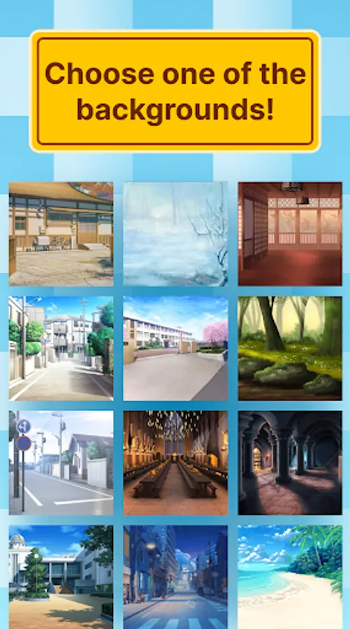 - Colorful backgrounds of streets, beaches, forests, apartments and palaces;